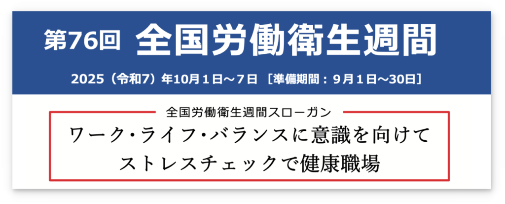 2025年は10月1日から7日にかけて、令和7年度「第76回全国労働衛生週間」が実施されます。